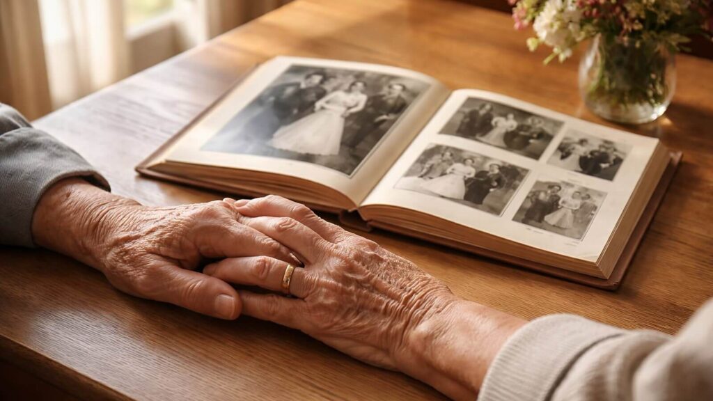Pour les grandes noces (or, diamant, platine), le bijou reste une option classique, mais pas la seule. Un bijou de famille transmis à cette occasion, une bague d’origine refondue dans un nouveau modèle, un voyage sur le lieu du premier voyage de noces, une reconstitution du menu du mariage servi en famille. Les familles me demandaient souvent, quand je travaillais en EHPAD, ce qu’on pouvait « faire de vraiment bien » pour les 60 ans de leurs parents. Je répondais toujours la même chose : ce qui reste, ce sont les photos, les mots écrits et les moments partagés, pas les objets empilés.